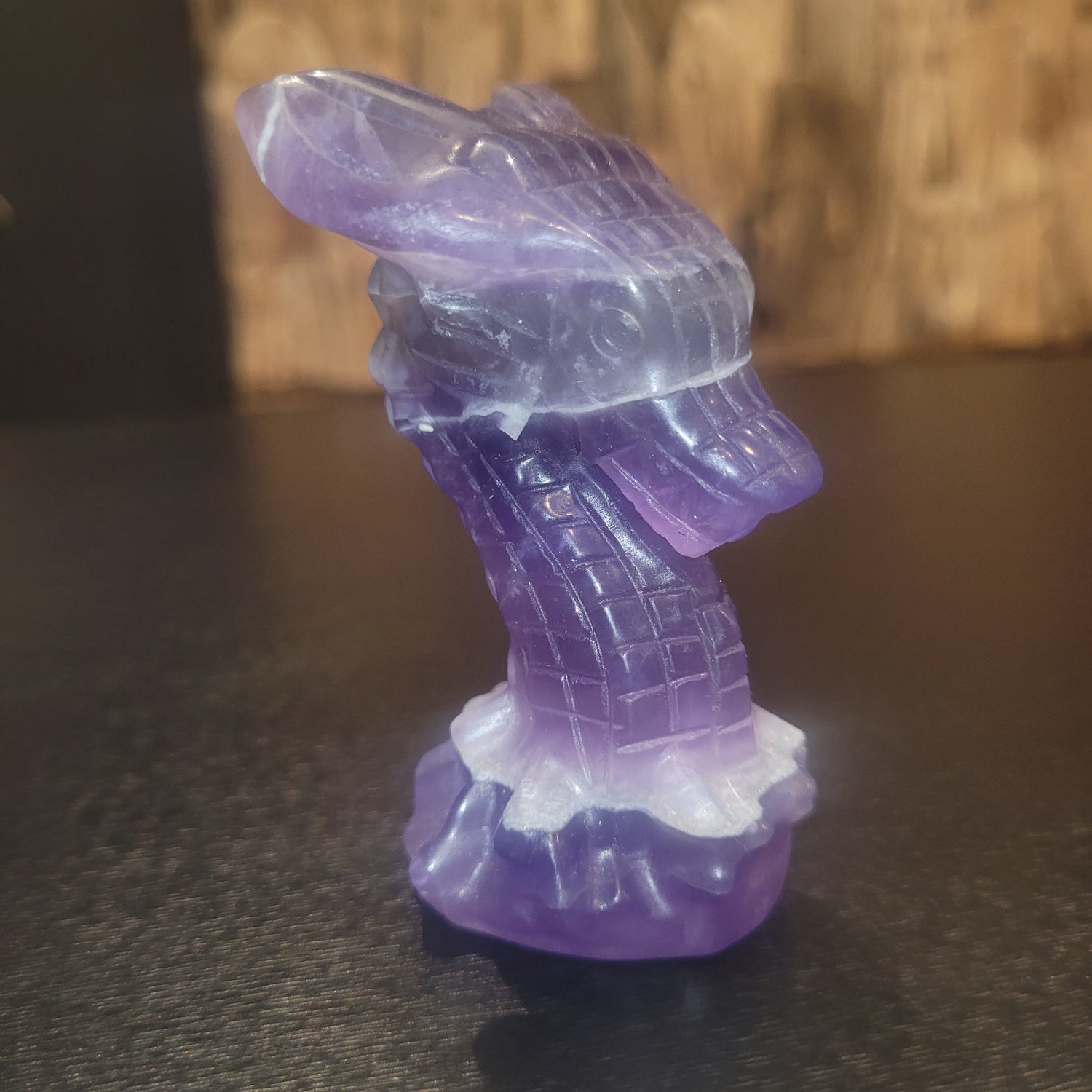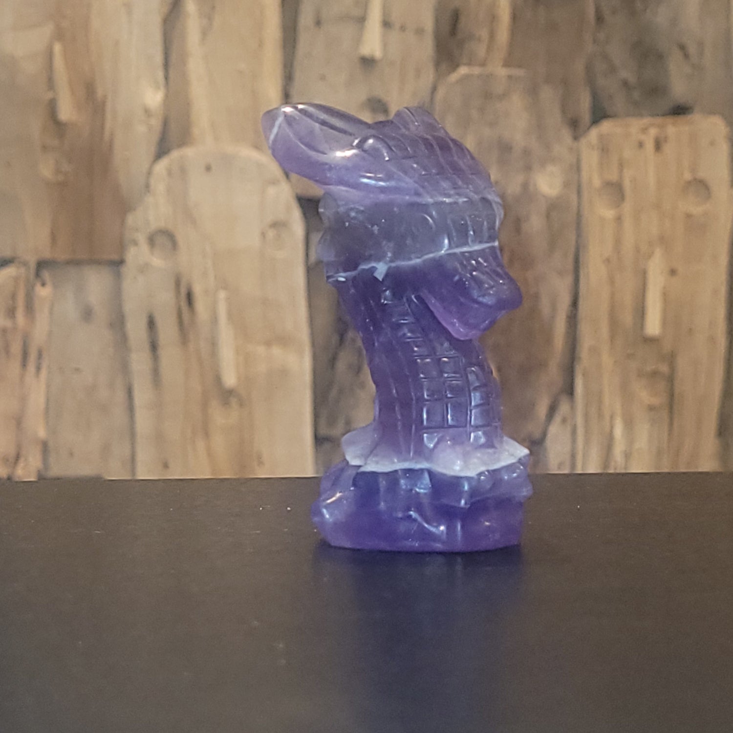 Le Dragon en Améthyste Chevron allie sérénité et puissance. Il favorise la protection spirituelle, l’équilibre émotionnel et l’ouverture de conscience. Véritable gardien énergétique, il transforme les énergies denses en lumière apaisée.