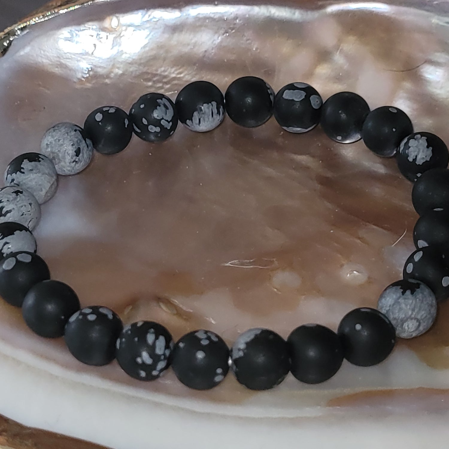 Bracelet Obsidienne Flocon de Neige Mat – Bracelet énergétique
