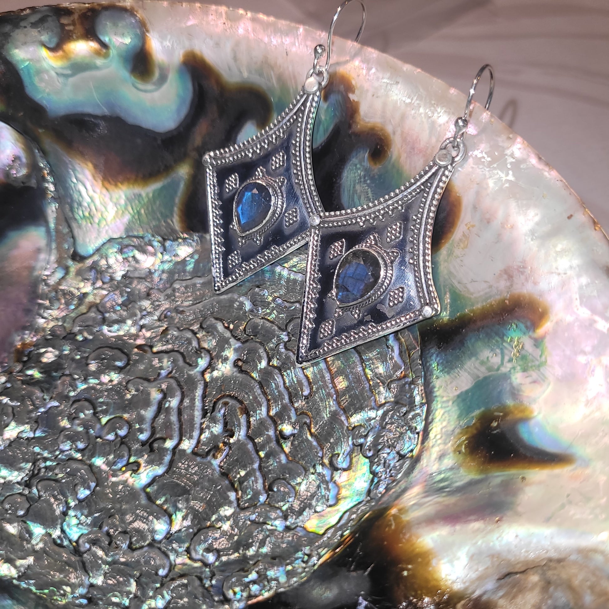 Ces boucles d’oreilles en labradorite et argent 925 allient beauté et intention. Elles protègent, élèvent l’énergie et apportent une touche de lumière à votre aura. Leur éclat iridescent et leur finition artisanale en font un bijou à la fois spirituel et élégant, conçu pour celles qui recherchent l’harmonie entre l’âme et la matière