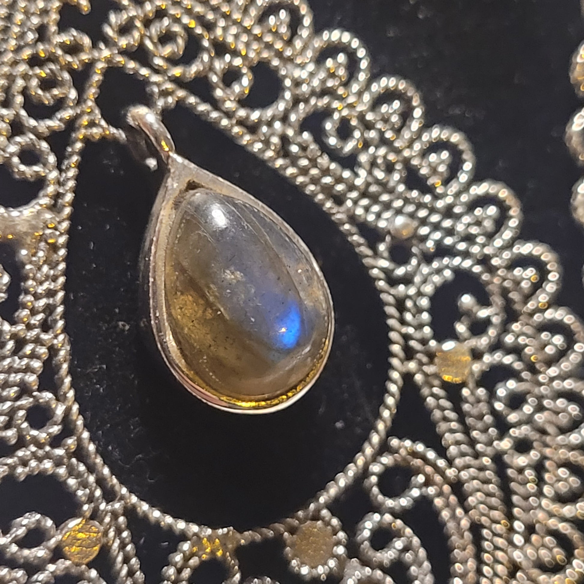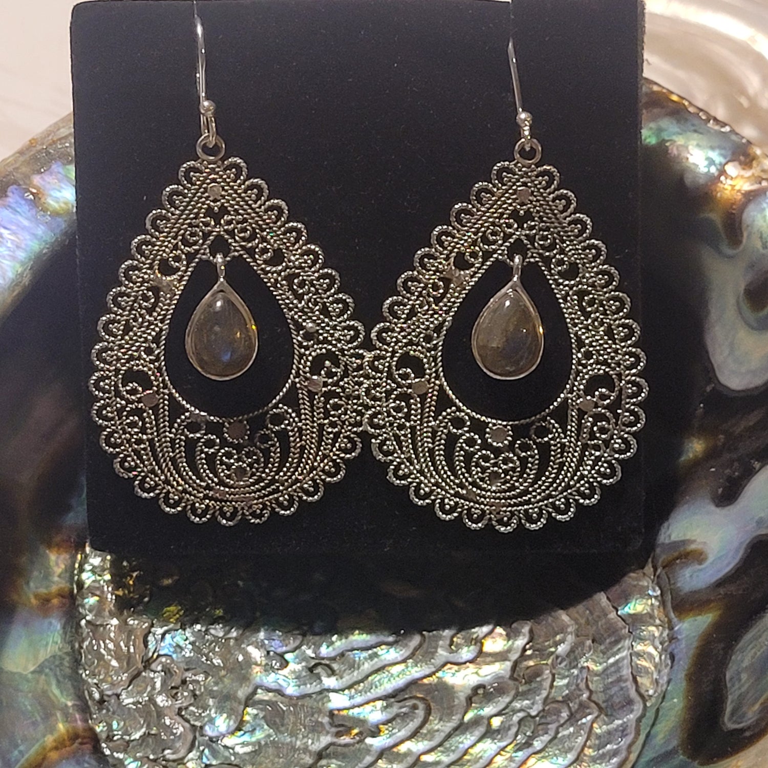 Boucles d’oreilles Labradorite – Argent 925 ajouré