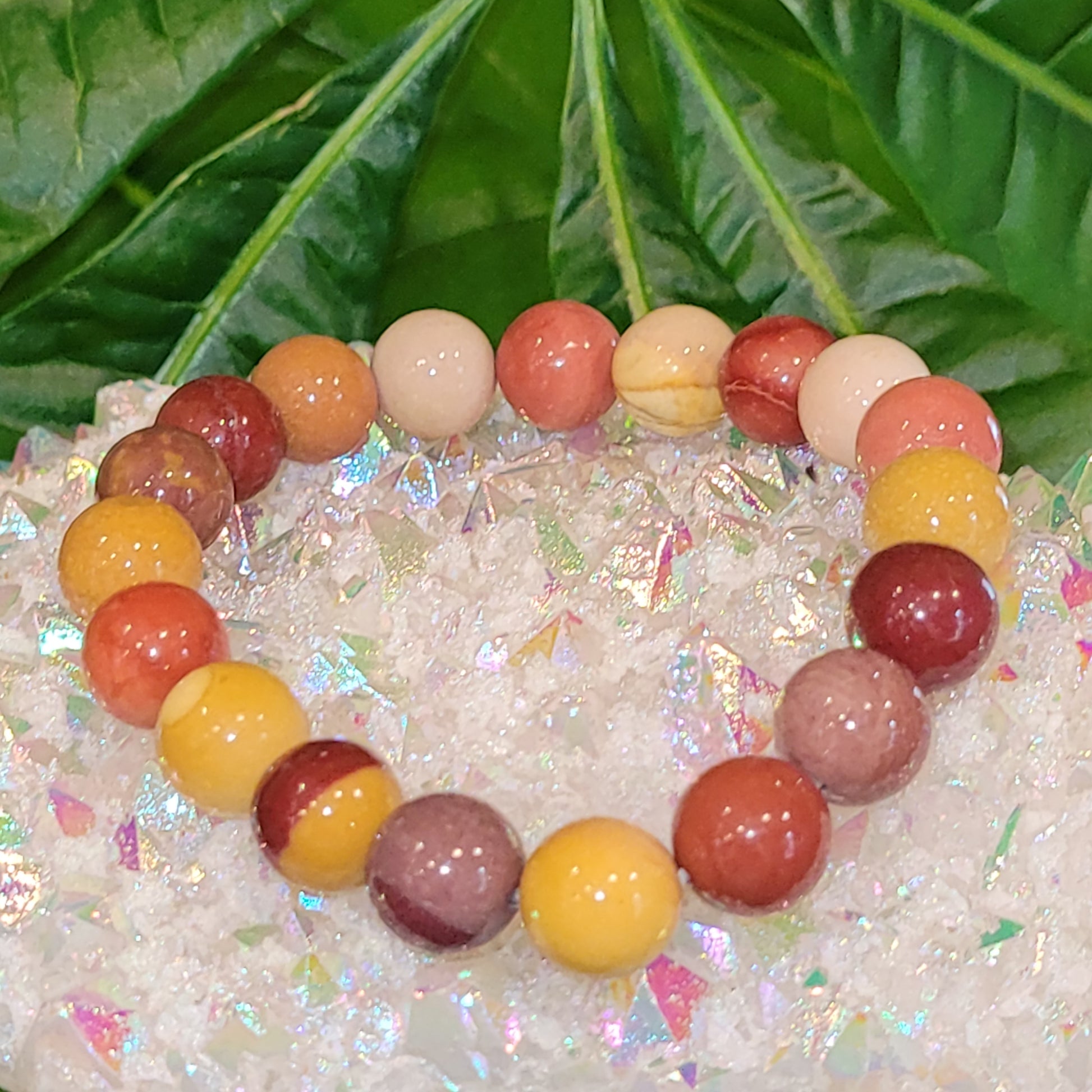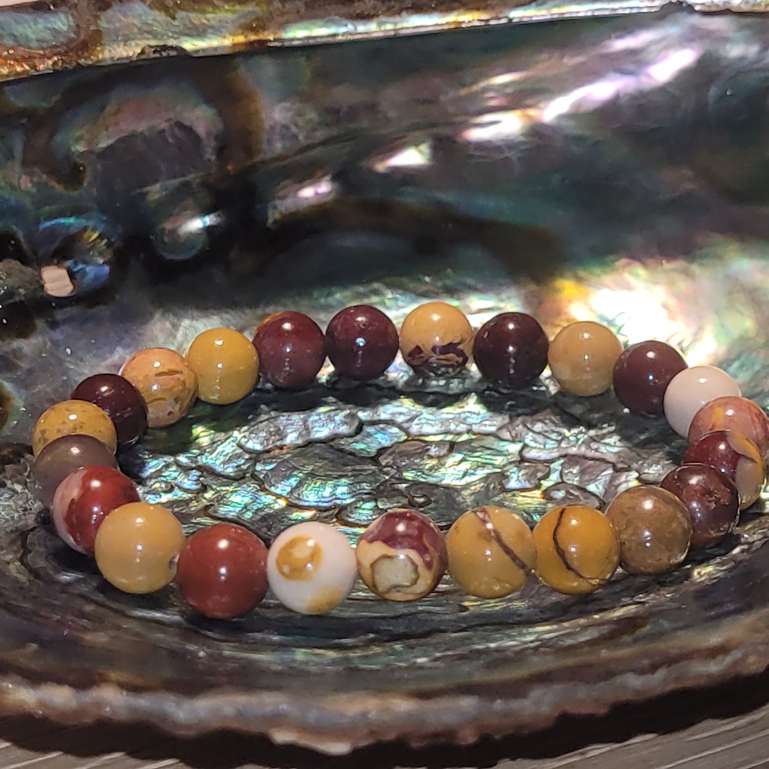 Ce bracelet en jaspe mokaïte séduit par ses nuances chaudes allant du rouge profond au jaune doré. Originaire d’Australie, cette pierre est connue pour sa capacité à éclairer l’esprit et à soutenir la prise de décision. Elle aide à voir les situations sous un angle nouveau et favorise la clarté dans les choix, tout en apportant ancrage et stabilité intérieure.