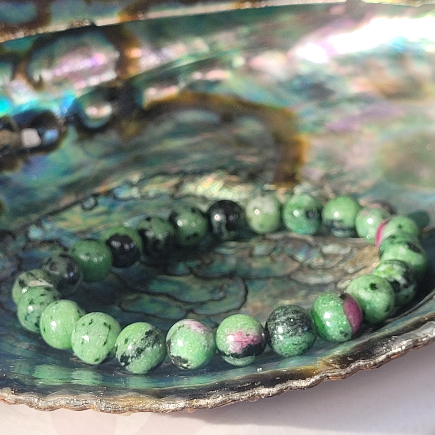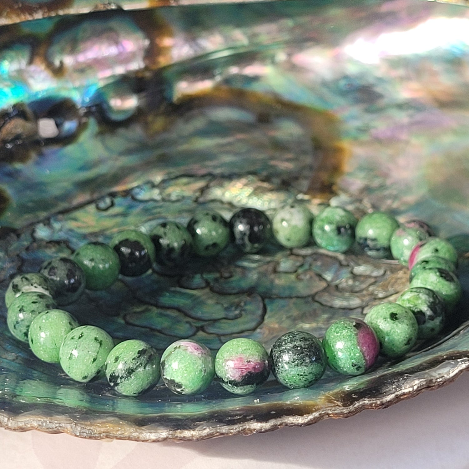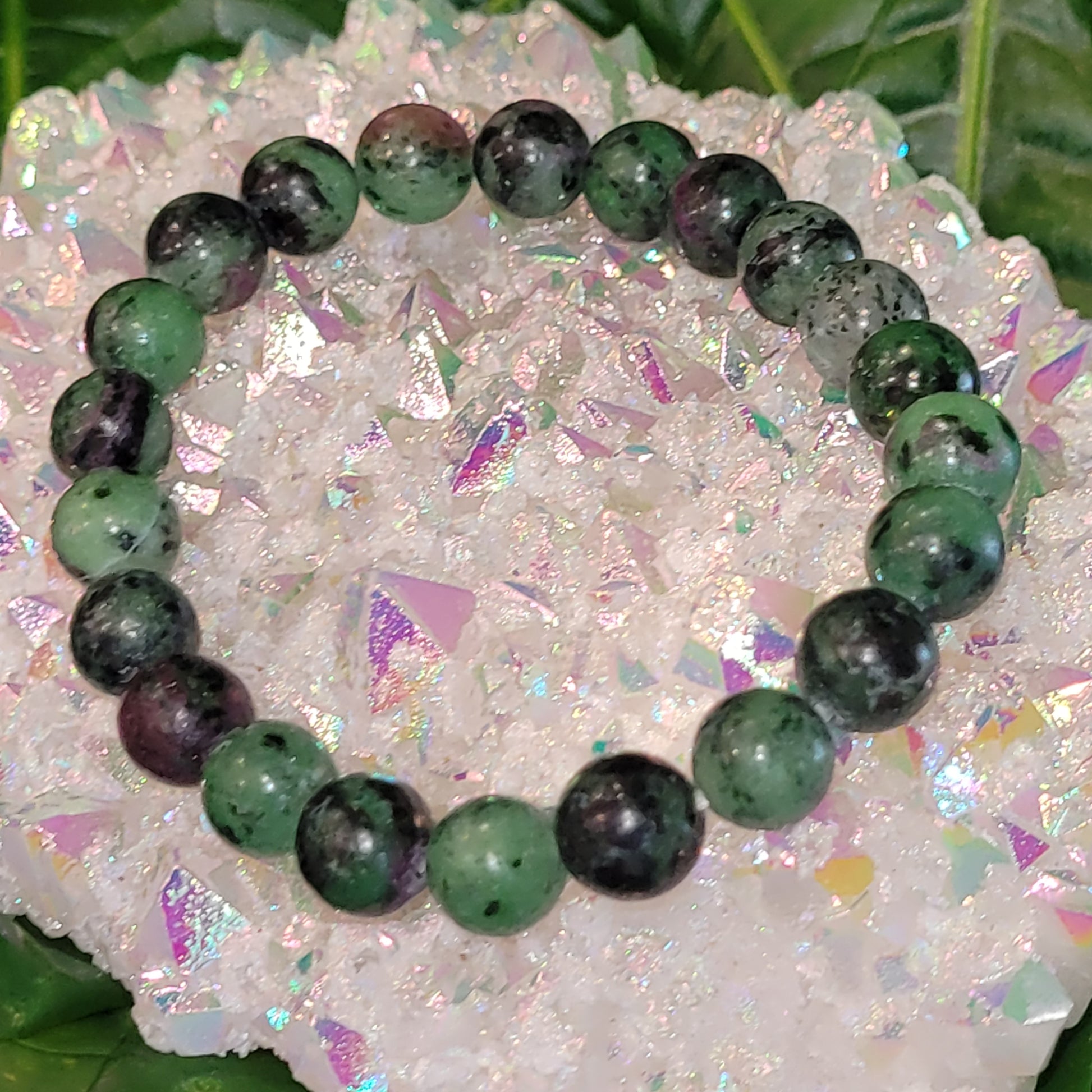 Ce bracelet en rubis zoïsite marie deux énergies complémentaires : la puissance vitale du rubis et l’apaisement de la zoïsite. Le rubis apporte dynamisme, passion et motivation, tandis que la zoïsite soutient la sérénité, l’ancrage et la clarté émotionnelle. Ensemble, ils forment une pierre de transformation idéale pour traverser les périodes de changement ou de renouveau.