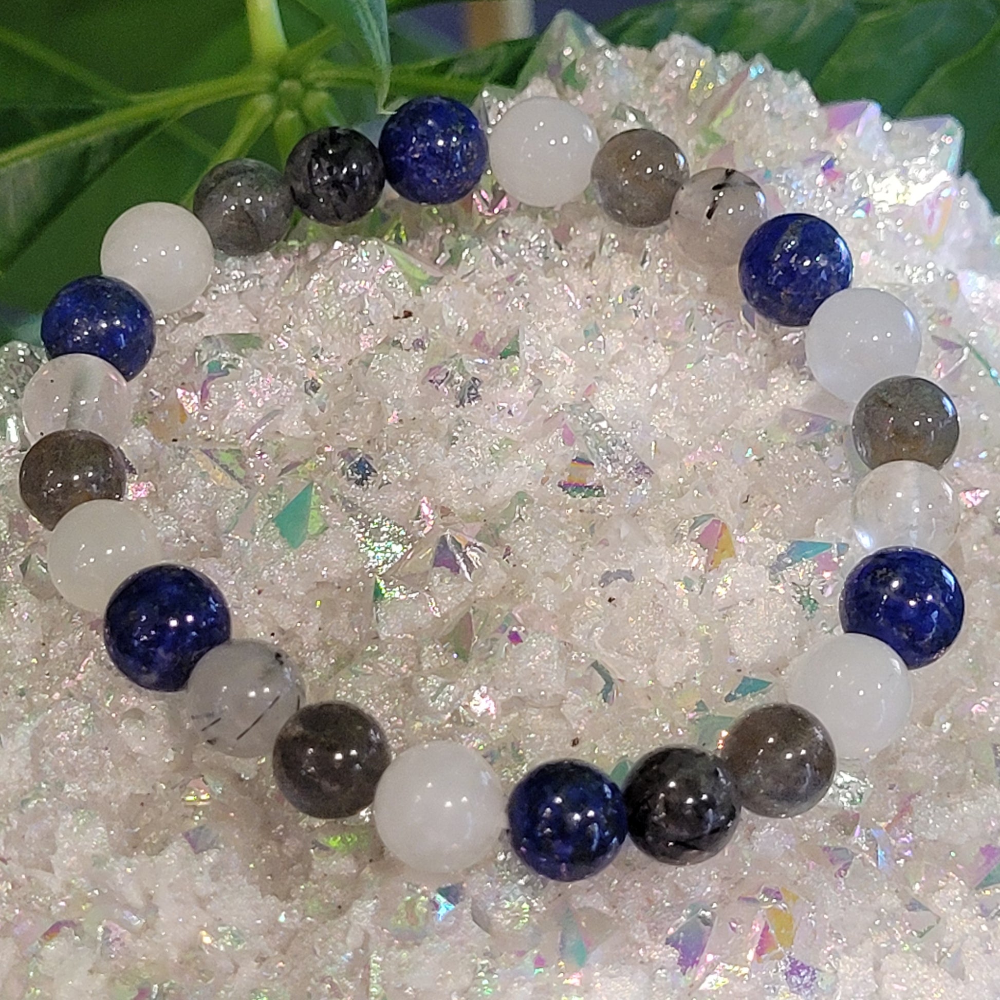 Le Bracelet Migraine associe trois pierres naturelles reconnues pour leurs vertus complémentaires. Le lapis-lazuli soutient la détente de l’esprit et contribue à apaiser les maux de tête en réduisant le stress. La pierre de lune rééquilibre les émotions et harmonise les énergies, aidant à calmer les tensions intérieures. Quant au quartz tourmaliné, il protège des influences négatives tout en favorisant une circulation énergétique fluide.