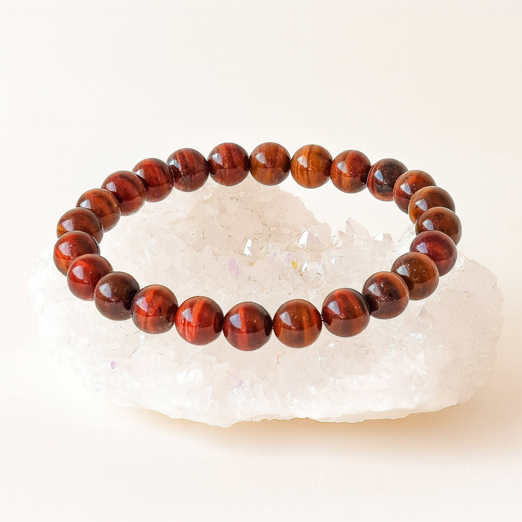 Le bracelet en œil de fer est une pierre puissante, réputée pour sa capacité à protéger et à ancrer. Ses nuances profondes mêlant brun, rouge et reflets métalliques évoquent la force et la résilience face aux épreuves. Pierre de courage et de stabilité, elle accompagne celles et ceux qui souhaitent garder confiance en eux, même dans les moments d’incertitude.