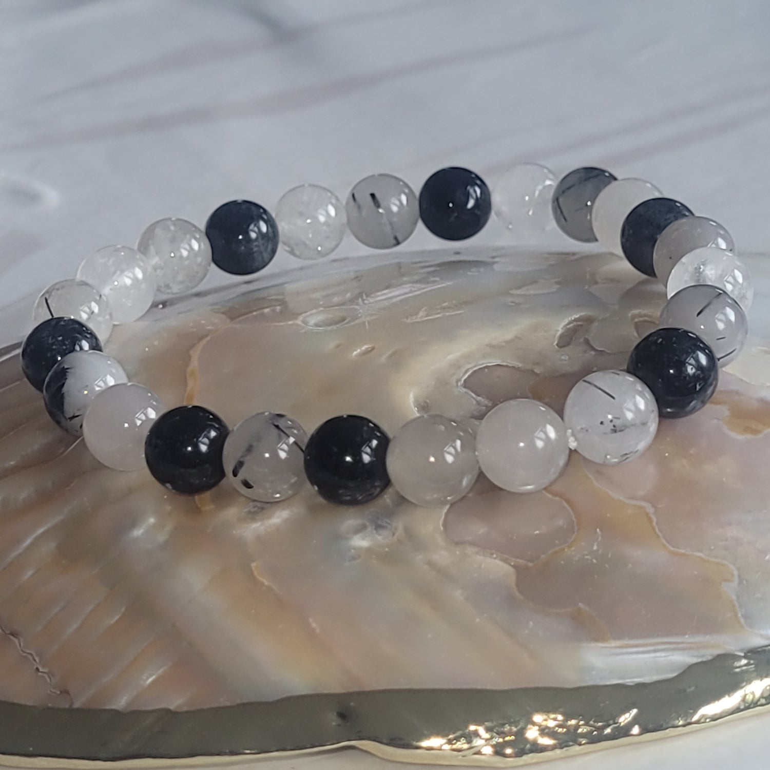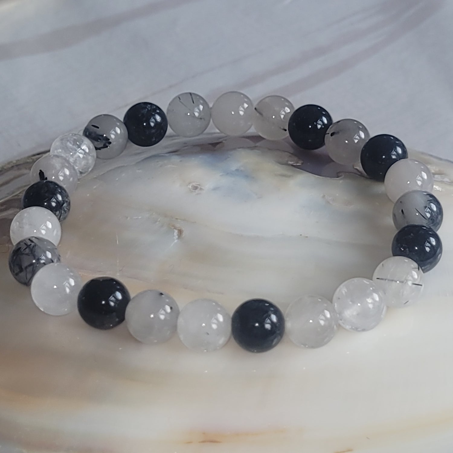 Ce bracelet en quartz tourmaline se compose de perles naturelles aux contrastes élégants, allant du blanc translucide aux inclusions sombres typiques de la tourmaline. Porté au quotidien, il aide à se recentrer, à cultiver la sérénité et à renforcer sa résilience émotionnelle.