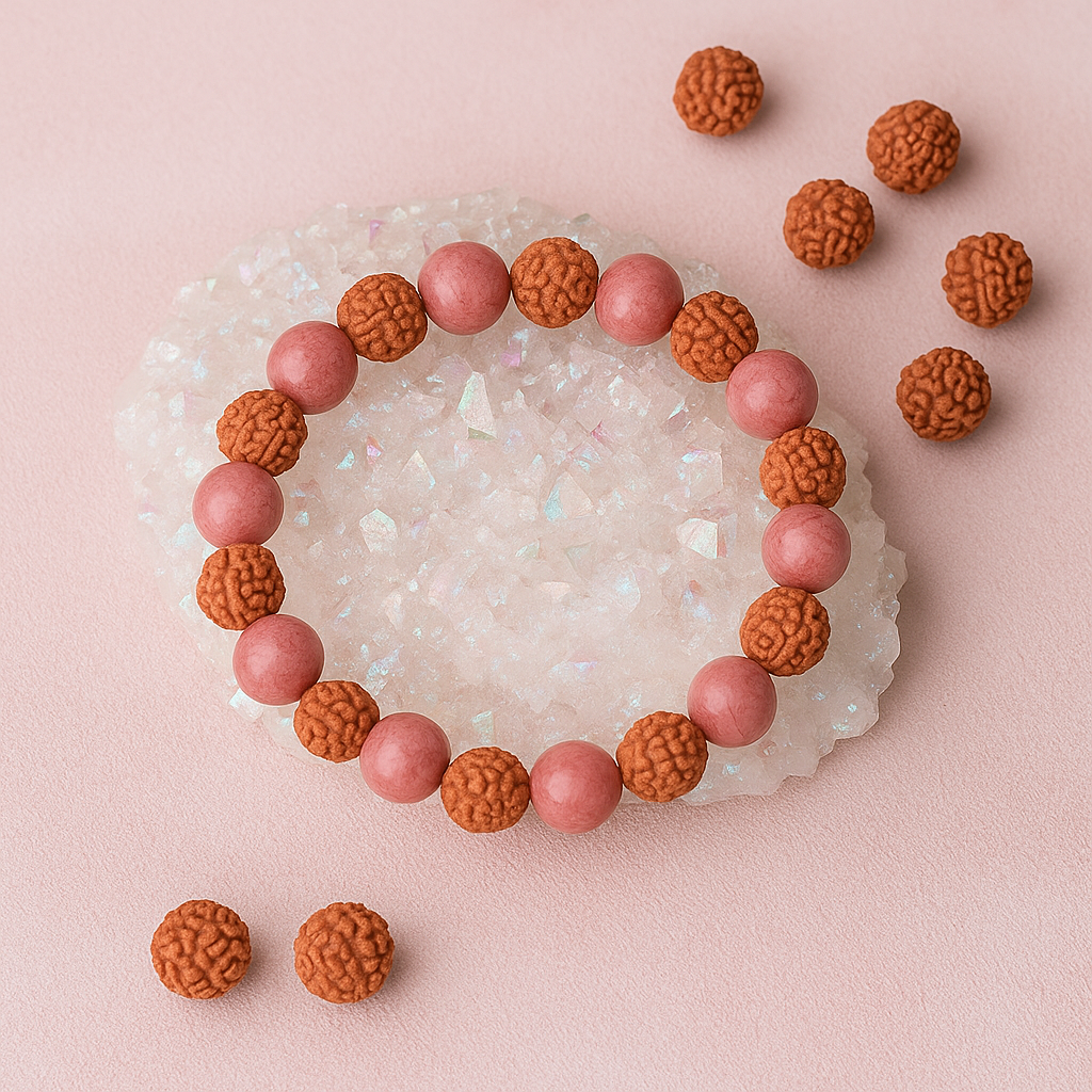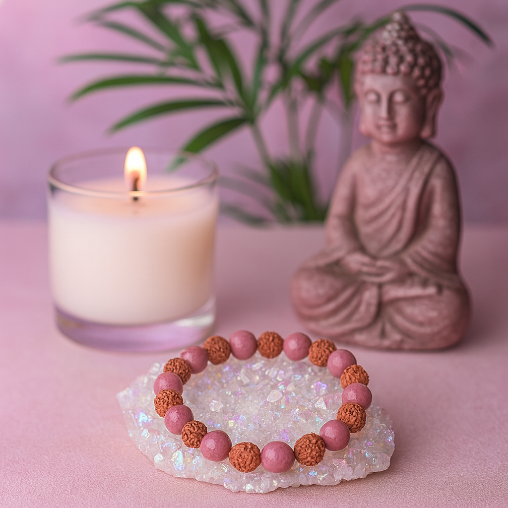 Le bracelet Rudraksha & Rhodonite agit comme un soutien émotionnel et spirituel. Il invite à la guérison intérieure, à la douceur envers soi-même et à une sérénité profonde, tout en équilibrant le corps et l’esprit.