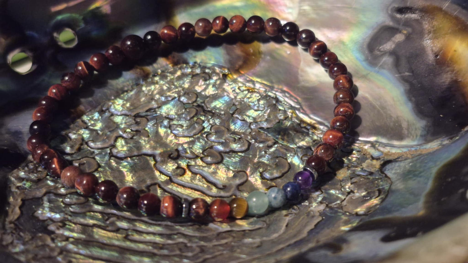 Le bracelet Œil de Taureau & Pierres des Chakras offre protection, ancrage et équilibre énergétique. Il aide à renforcer la confiance, à canaliser les émotions et à avancer avec calme et détermination