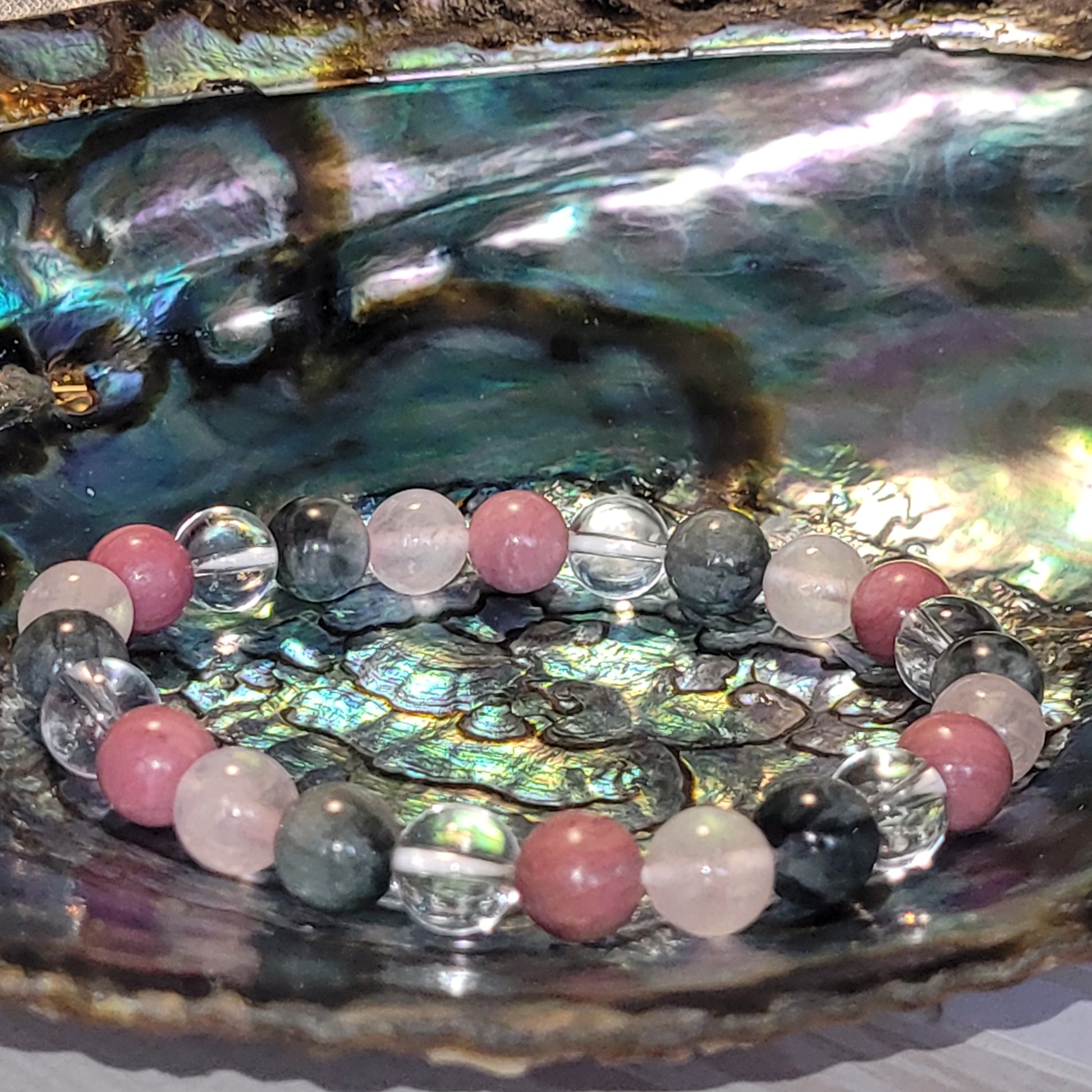 Le bracelet Émotion a été conçu comme un soutien doux pour le cœur et les émotions. La Rhodonite aide à apaiser les chagrins, à libérer les tensions affectives et à retrouver une forme de sécurité intérieure. Elle est associée au Quartz rose, pierre d’amour et de tendresse, qui invite au pardon, à la douceur et à l’acceptation de soi.