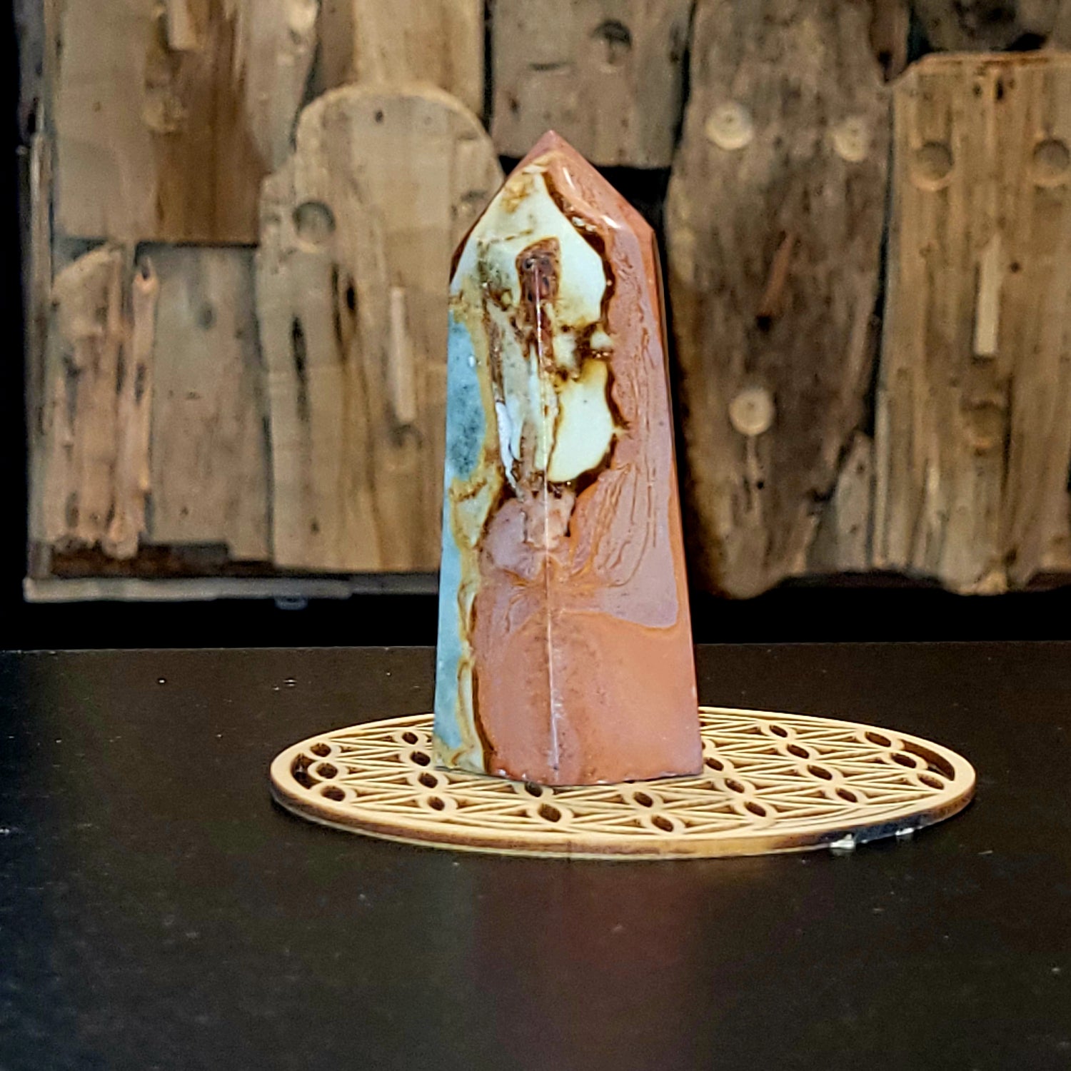 En lithothérapie, le Jaspe Polychrome relie au chakra racine, favorisant l’ancrage, la stabilité et la vitalité. Il aide à libérer les tensions émotionnelles et à retrouver confiance en soi. Placée dans un lieu de vie ou sur un autel, cette pointe diffuse une vibration équilibrante et protectrice.