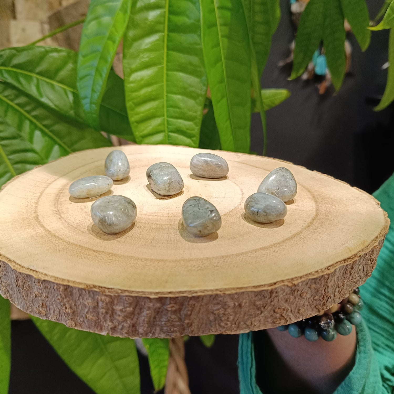Avoir une Labradorite roulée près de soi, c’est se sentir protégé et recentré. Elle harmonise les émotions, renforce l’intuition et crée un cocon d’énergie bienveillante propice à la paix intérieure.
