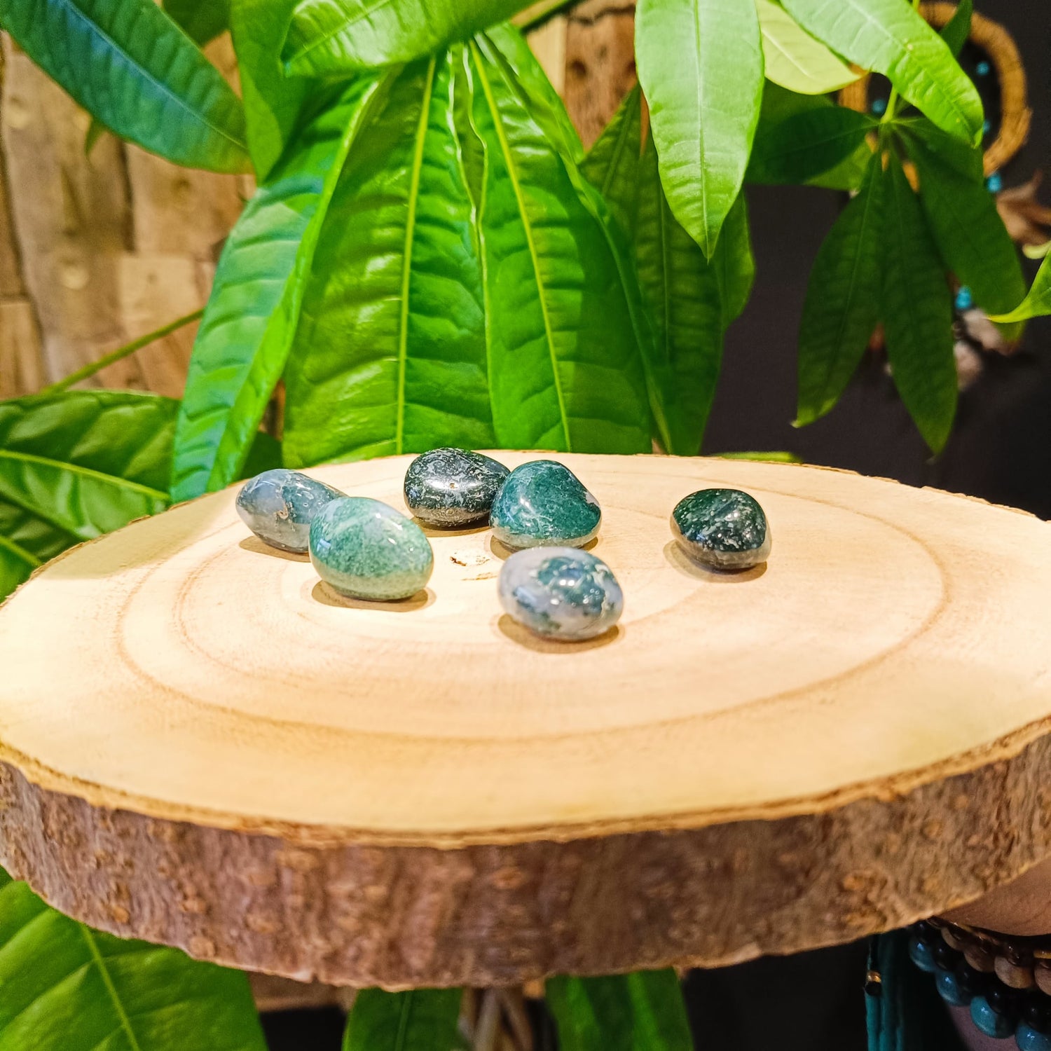 Symbole de fertilité et de croissance, l’Agate Mousse est une pierre profondément liée à la Terre. Sa teinte verte et ses inclusions organiques rappellent les forêts et les rivières, évoquant le renouveau et la générosité de la nature. Apaisante et régénérante, elle aide à se reconnecter à l’essentiel et à retrouver une paix intérieure durable.
