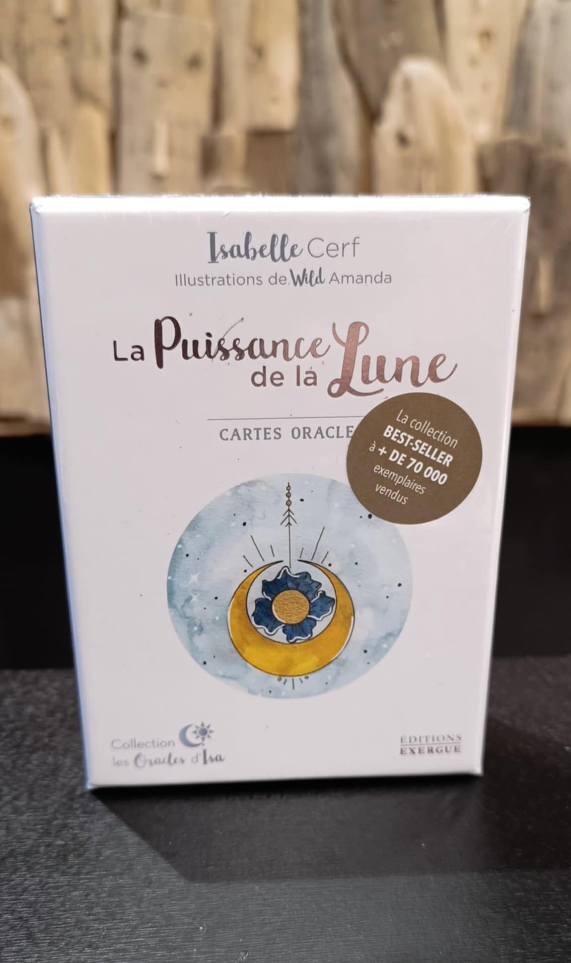 La Puissance de la Lune – Oracle divinatoire est un jeu créé par Isabelle Cerf, illustré par Wild Amanda, et publié aux Éditions Exergue. Inspiré par la magie lunaire, il invite à se connecter aux différentes phases de la Lune pour mieux comprendre ses émotions, ses cycles intérieurs et les transformations qui jalonnent le quotidien.