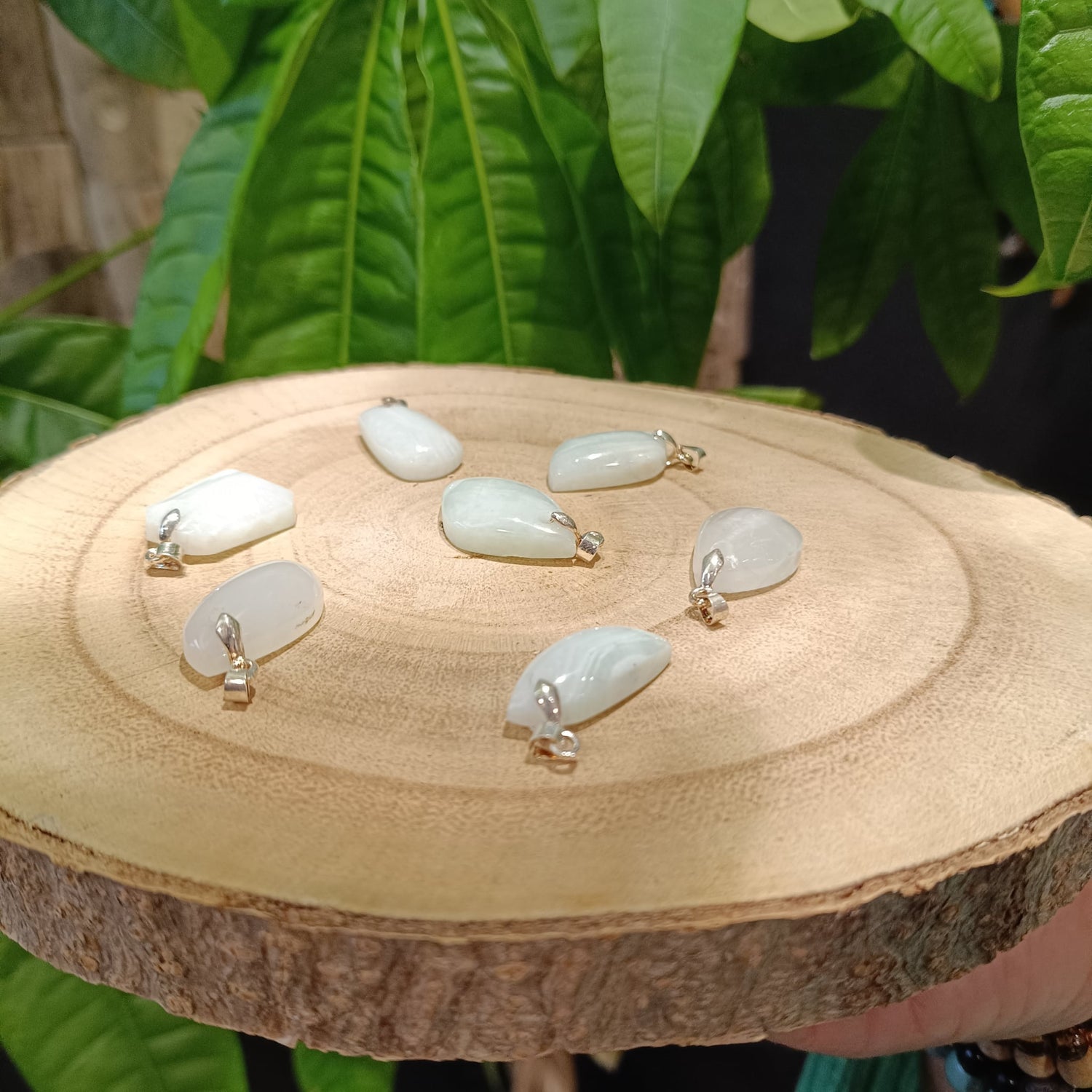 Ce pendentif en aragonite blanche offre une énergie douce et rassurante. Il soutient l’apaisement émotionnel, favorise le recentrage et apporte une touche lumineuse à votre tenue et à votre quotidien.