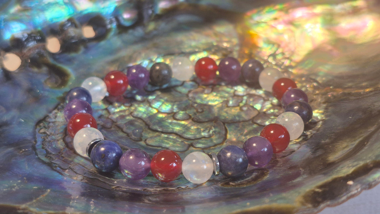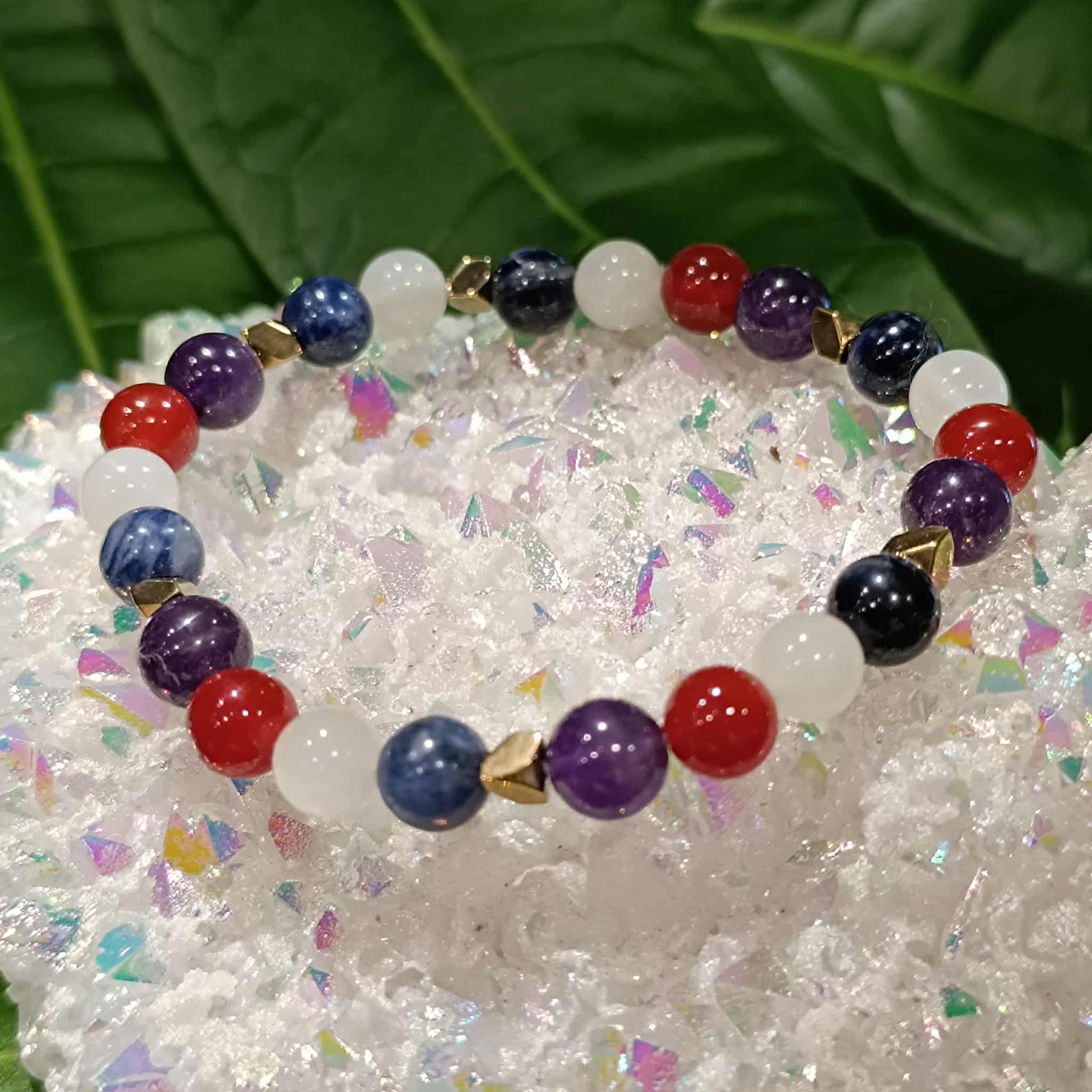 À porter quotidiennement pour ressentir son soutien subtil ou lors de vos pratiques spirituelles. Évitez l’exposition prolongée à l’eau ou aux produits chimiques afin de préserver l’éclat naturel des pierres. Un nettoyage régulier à l’eau claire ou Sauge et une recharge à la lumière lunaire ou sur un amas de quartz sont recommandés.