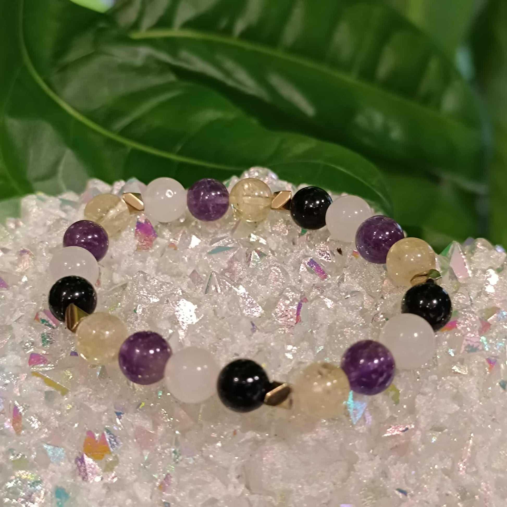 Ce bracelet réunit protection, douceur et vitalité dans un bijou élégant. Grâce à l’alliance de l’obsidienne, du quartz rose, de l’améthyste et de la citrine, il soutient le Capricorne dans sa quête de réussite tout en lui offrant équilibre émotionnel et sérénité intérieure.