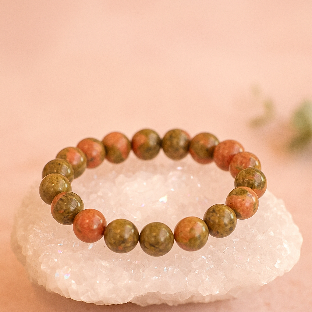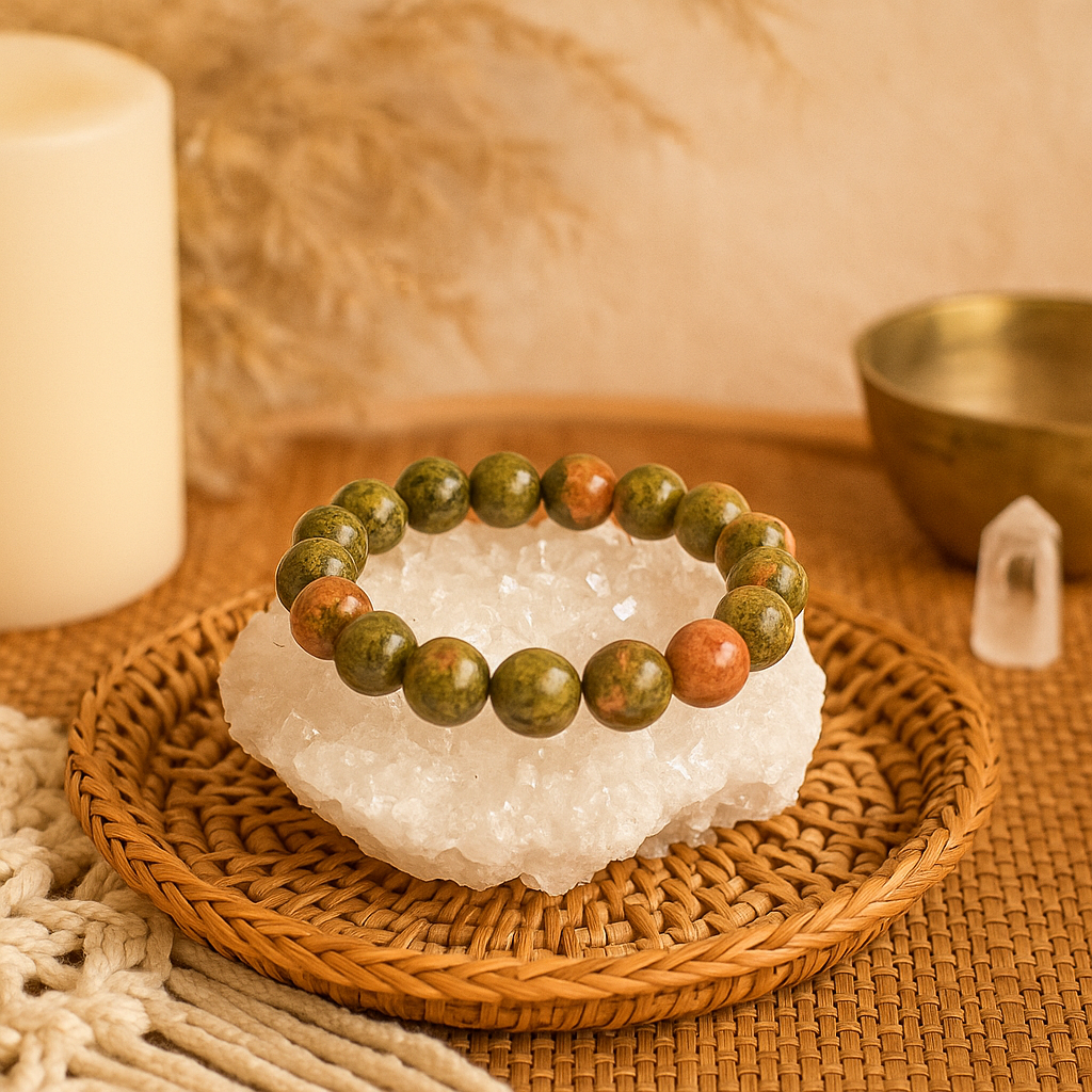 Élégant et porteur de sens, ce bracelet en Unakite accompagne la libération émotionnelle, soutient la vitalité et invite à retrouver sérénité et équilibre au quotidien.