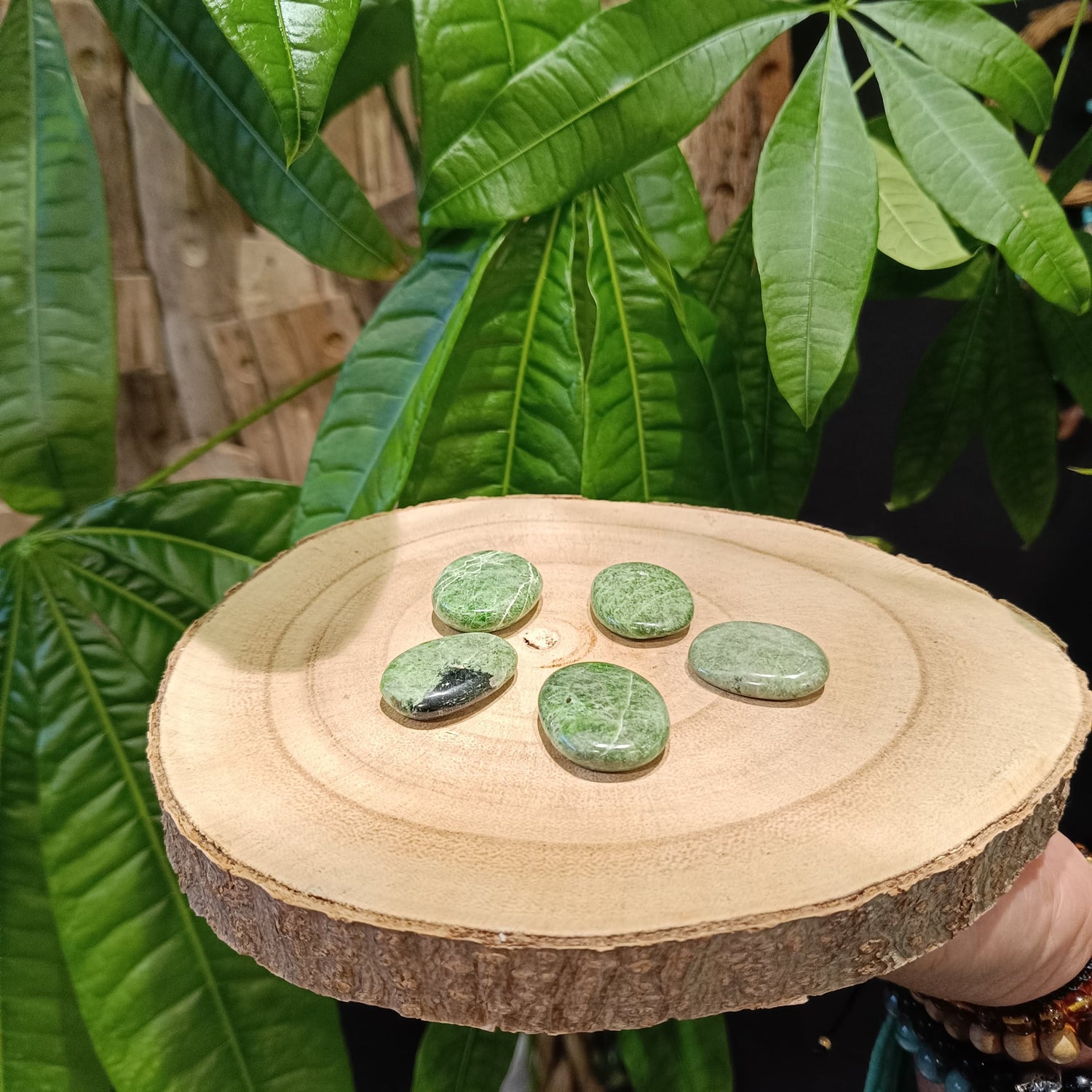 Pierre d’un vert tendre, le Diopside diffuse une énergie douce et réconfortante. Connue comme pierre du pardon, elle invite à relâcher les tensions intérieures et à se réconcilier avec soi-même. Sa composition riche en calcium et magnésium en fait un soutien naturel pour apaiser le système nerveux et les émotions fortes.