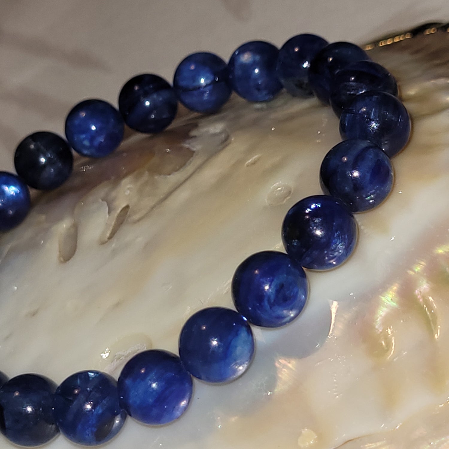 Le bracelet en cyanite est une pierre naturelle d’un bleu profond, réputée pour ses vertus d’apaisement et de clarté intérieure. Reliée au chakra de la gorge et au chakra du troisième œil, elle soutient la communication sincère et aide à développer l’intuition. La cyanite est aussi connue pour favoriser l’équilibre émotionnel et calmer le mental lors de périodes de stress ou de confusion.