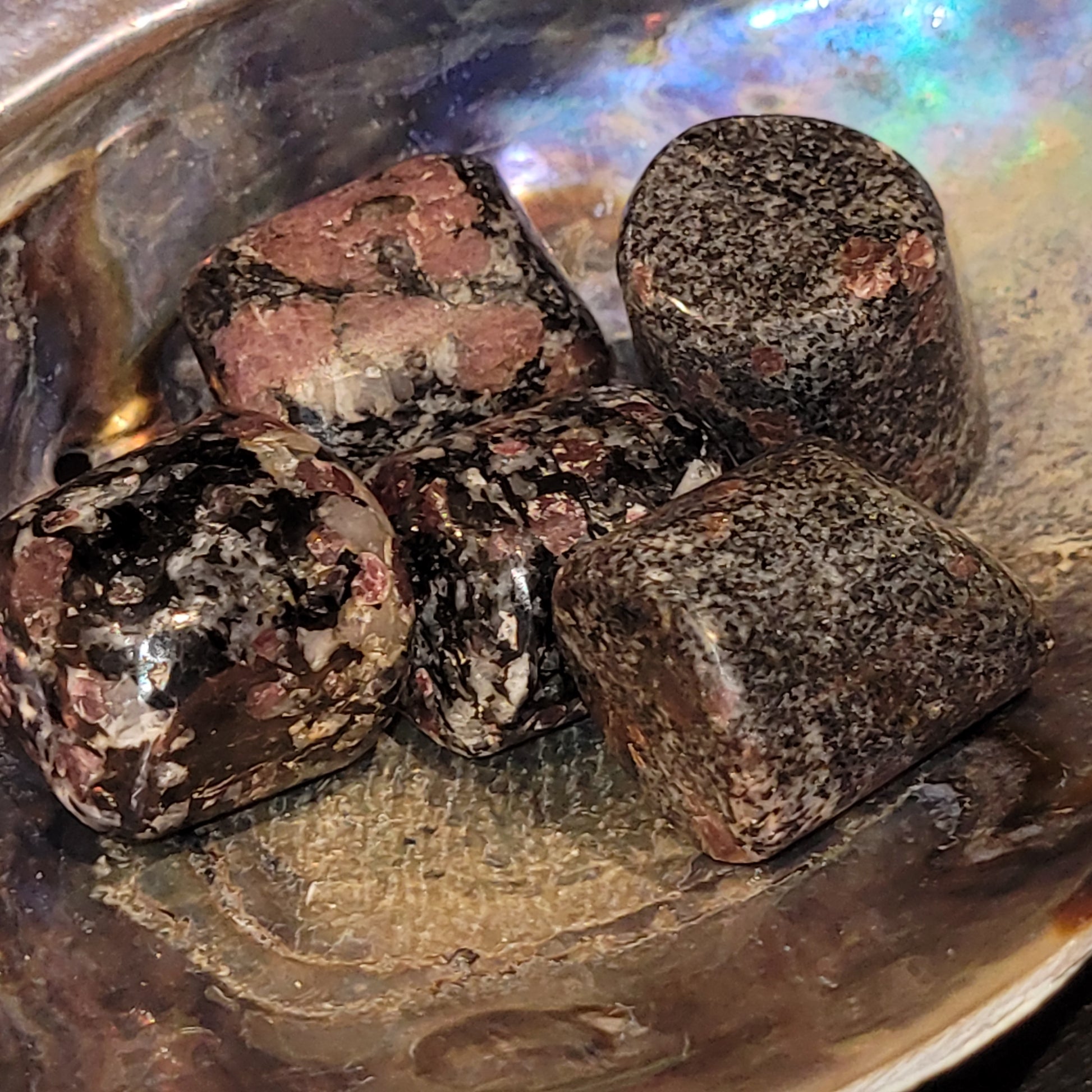 Chaque pierre polie (1 à 3 cm) révèle de subtiles nuances sombres, évoquant la puissance tranquille de la terre. Idéale à garder sur soi, en méditation ou dans un espace de repos, elle aide à se reconnecter à son essence et à se libérer des tensions accumulées.