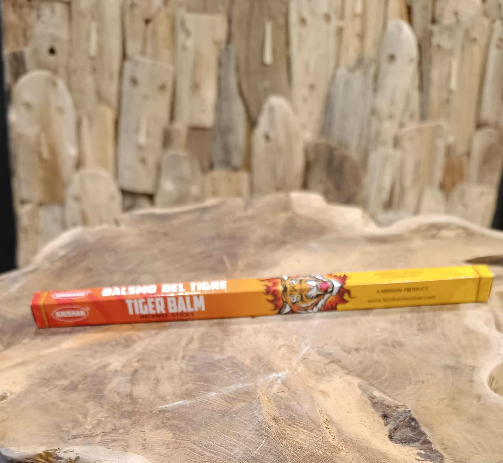 L’encens Tiger Balm (Bálsamo del Tigre) est un encens en bâtonnet aux notes puissantes et pénétrantes, inspiré du célèbre baume asiatique. Il combine des essences végétales stimulantes qui apportent énergie, vitalité et protection à votre environnement.