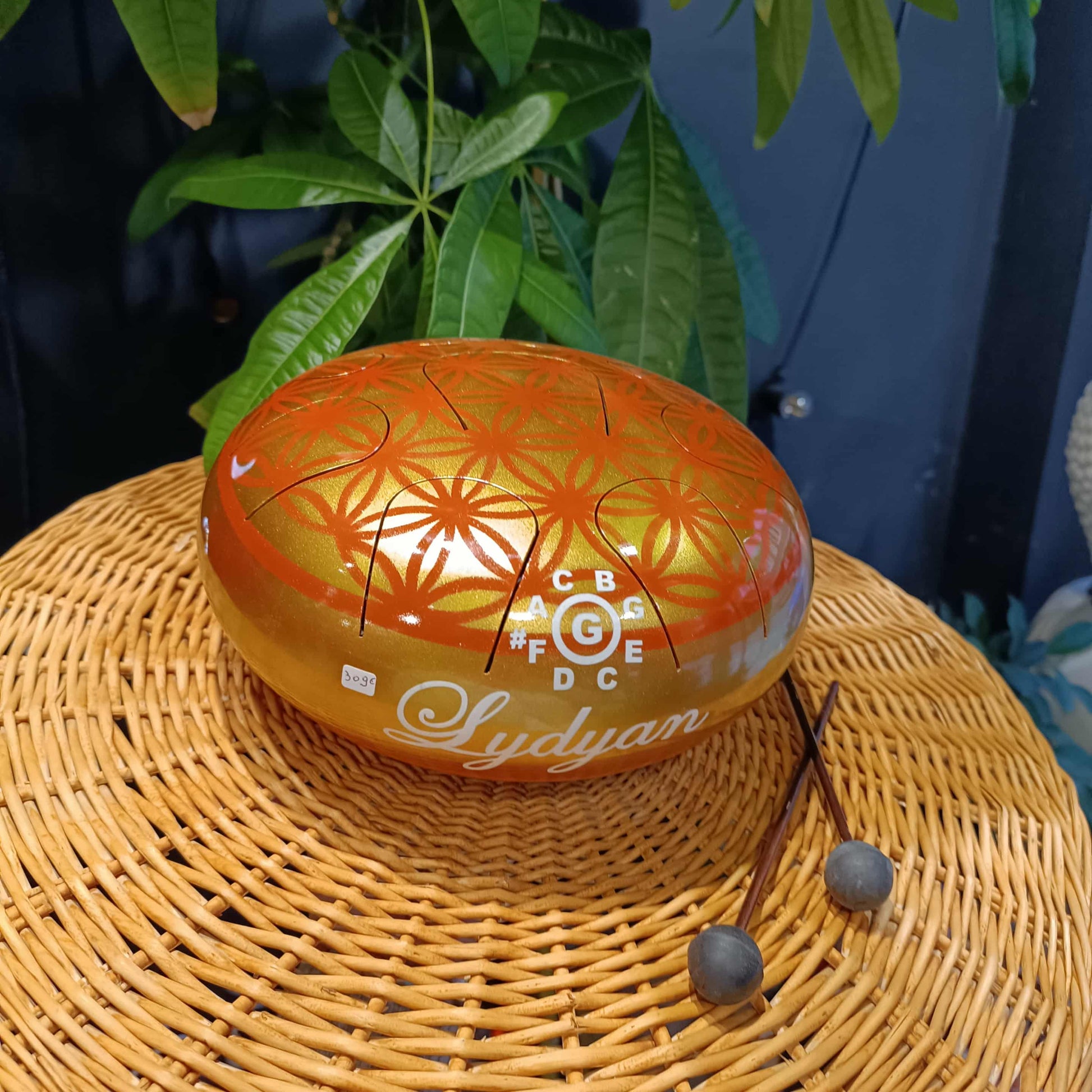 Ce Tongue Drum Lydian est un instrument intuitif conçu pour apporter détente, fluidité et harmonie. Sa magnifique finition dorée ornée de motifs géométriques lui confère une présence lumineuse, idéale pour les espaces de méditation, les soins énergétiques, les ateliers ou une pratique personnelle.